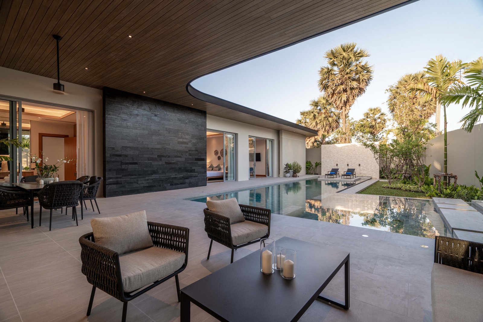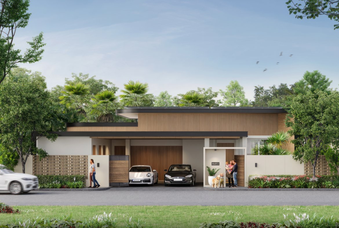 The exterior ceilings and cladding are made of Wood Plastic Composite (WPC), a low-maintenance, rot-resistant material that withstands water and UV damage. With a stylish finish and a lifespan of up to 30 years, WPC ensures the villas maintain their fresh, modern look over time without requiring frequent upkeep.