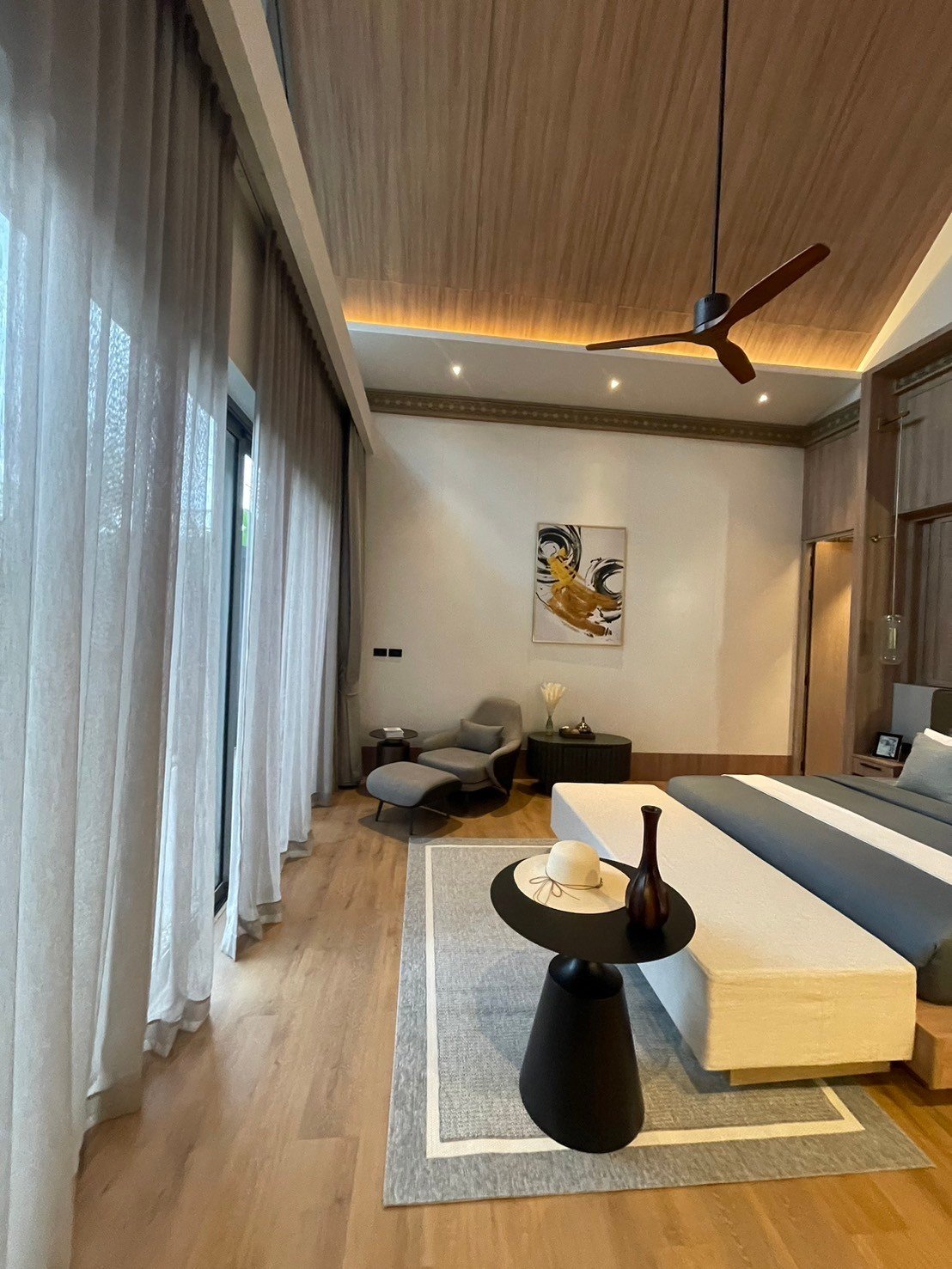 - Master Bedroom: Features wood-plastic composite flooring, painted walls, and a cooling concealed unit (30,000 BTU).
