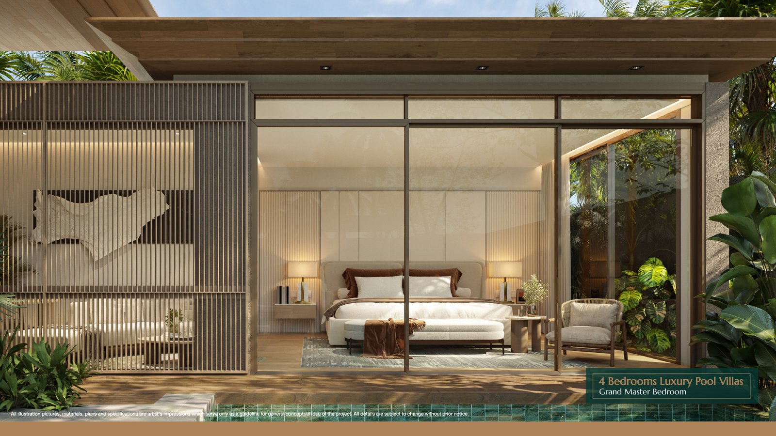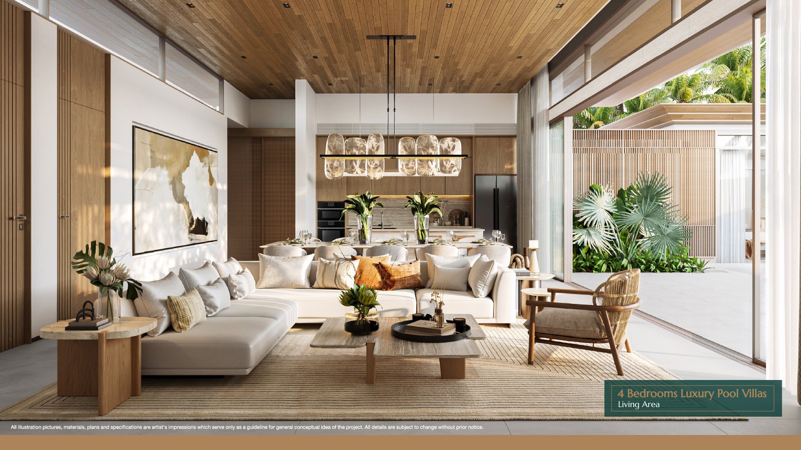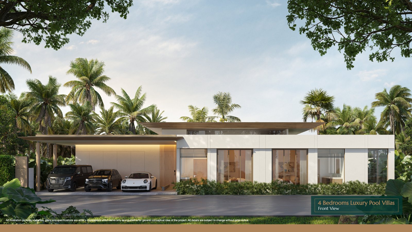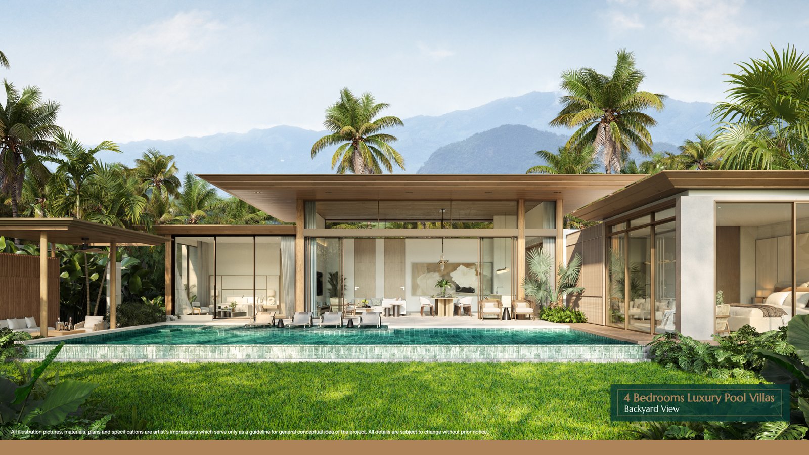 Experience ultimate luxury with this 4-bedroom, 5-bathroom pool villa featuring a land size of 587-693 sqm and a spacious living area of 511.2 sqm. The villa is designed with elegance and comfort in mind, offering an abundance of space and modern tropical aesthetics.