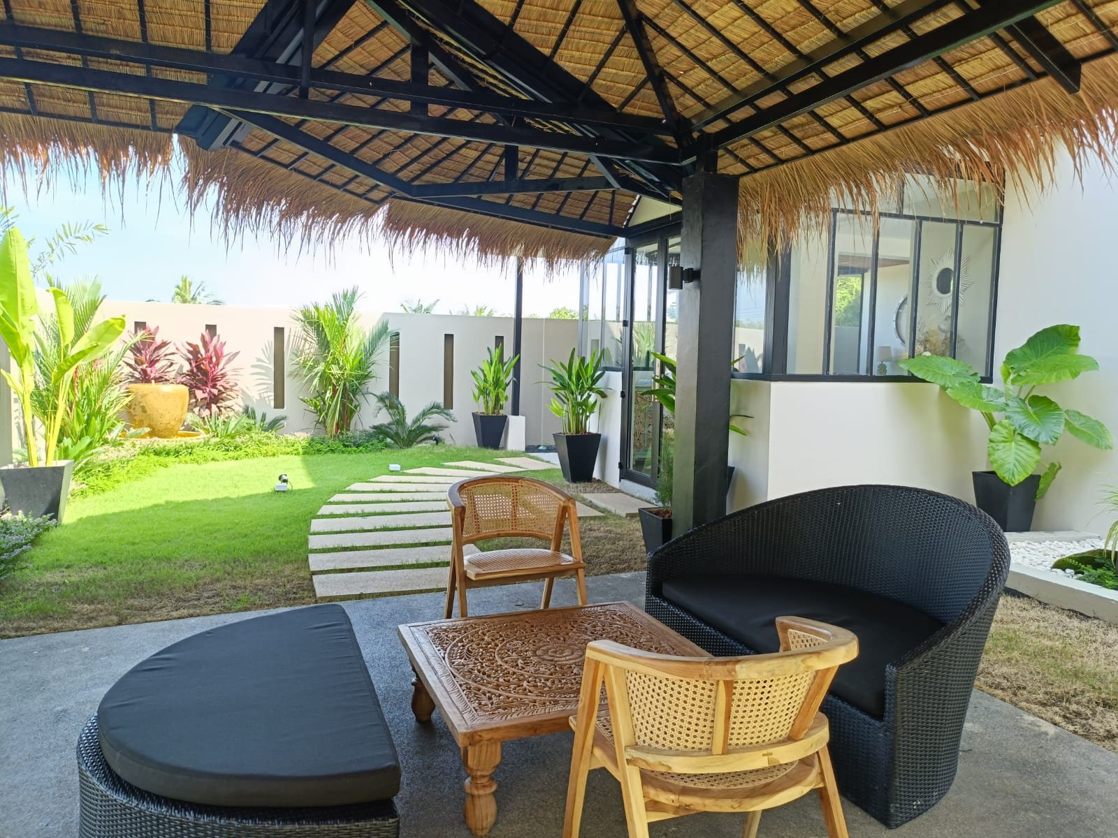 Step outside to a private deck with peaceful rubber plantation views, enhanced with artificial grass flooring that blends style with easy maintenance. Inside, a fully equipped kitchen offers everything you need for everyday living or entertaining.