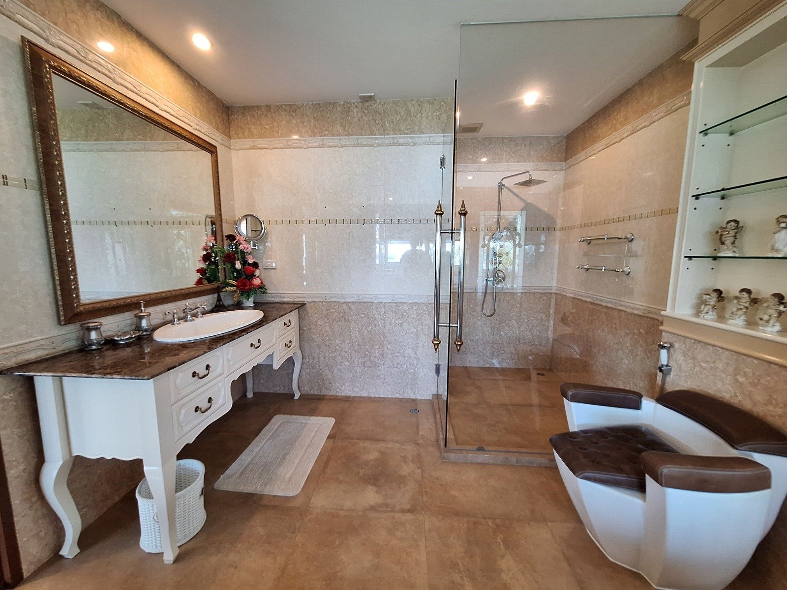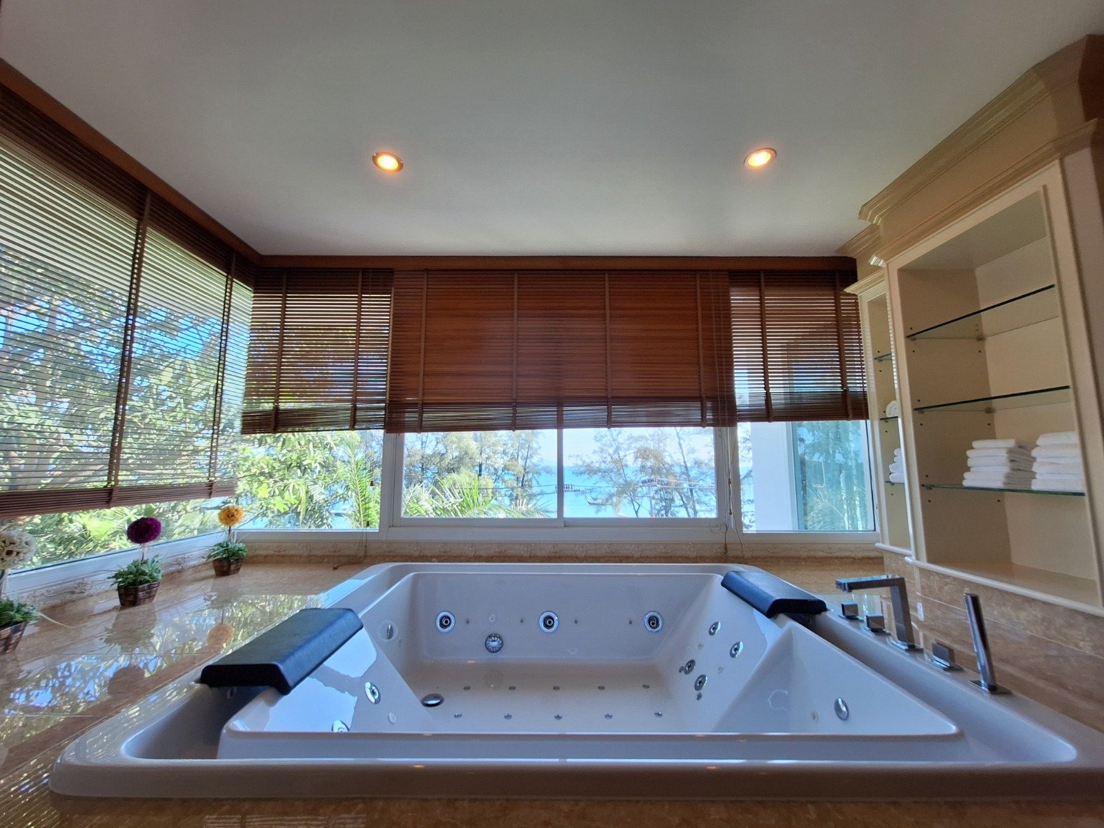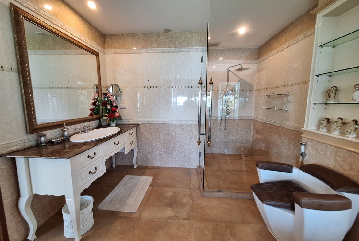 - Bathrooms: There is 1 luxurious bathroom with a jacuzzi that also offers a beautiful sea view, plus an additional shower room. There is also a guest restroom for added convenience.